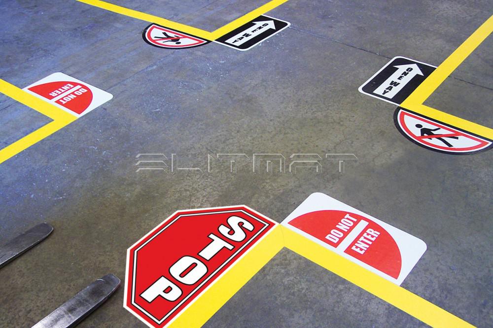 - erhältlich als STOP-Markierungen, dreieckige, kreisförmige, rechteckige Warnmarkierungen