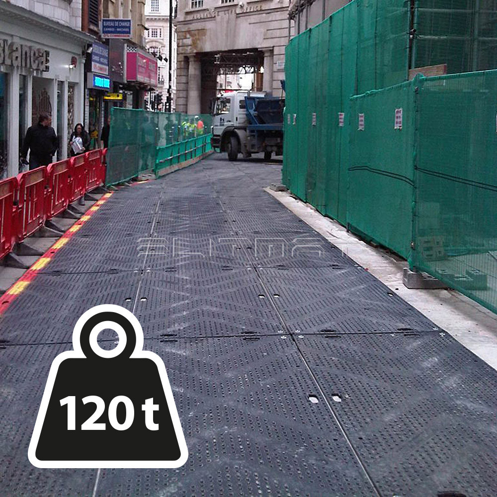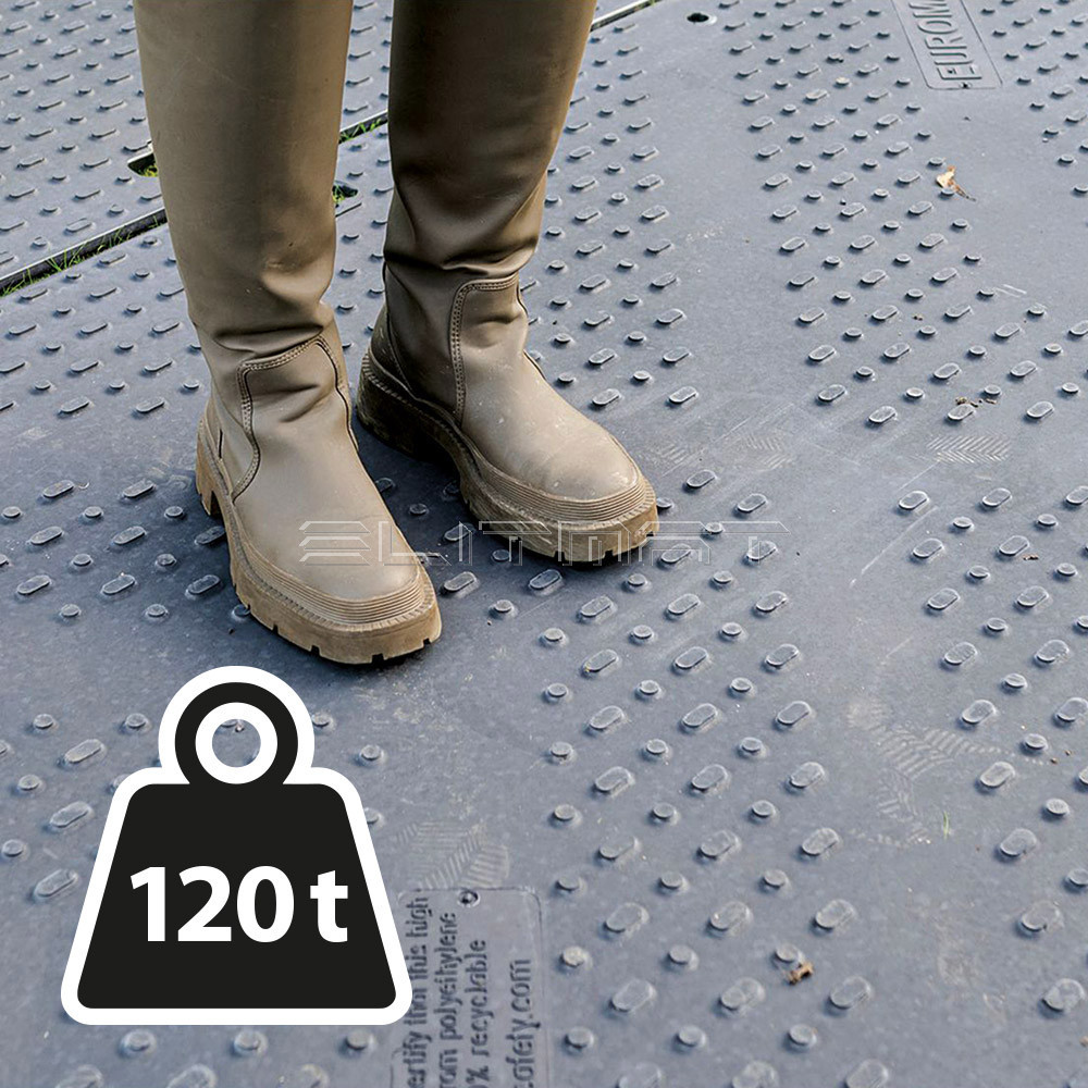 EuroElit HD reduziert Schäden an ökologisch sensiblen Bereichen erheblich und vermeidet die Notwendigkeit der Wiederherstellung, sobald das Projekt abgeschlossen ist. Dank ihres flexiblen Designs passt sich EuroElit an die Konturen von welligen oder abschüssigen Bodenverhältnissen an. Mit nur 35 kg ist EuroMat leicht und bietet strategisch positionierte Handgriffe für einfaches Handling. EuroElit lässt sich schnell und einfach mit nur 2 Personen entladen und verlegen. Das spezielleOberfläche bietet hervorragende Griffigkeit und verbesserte Vorwärtsbewegung von schweren Maschinen oder Fahrzeugen und reduziert seitliches Wegrutschen, auch bei schwierigsten Wetter- und Bodenbedingungen. Anwendungen: Baugewerbe, Erd- und Tiefbau Temporäre Zugangswege und Fahrbahnen Fußgängerzuwege Notfallzufahrten Unterhaltung von Versorgungseinrichtungen und Infrastruktur Unterhaltung von Golfplätzen und Sportplätzen Sport- und Freizeitveranstaltungen Eine optionale Oberfläche mit flachem Profil macht EuroElit ideal für den Einsatz als Fußgängerüberweg EuroElit bietet unterschiedliche Verbindungsmöglichkeiten für sämtliche Bodenbedingungen, einschließlich 2- und 4-Wege Verbinder, Flexverbinder und Fast-Fit-Verbinder für eine schnellere Verlegung.