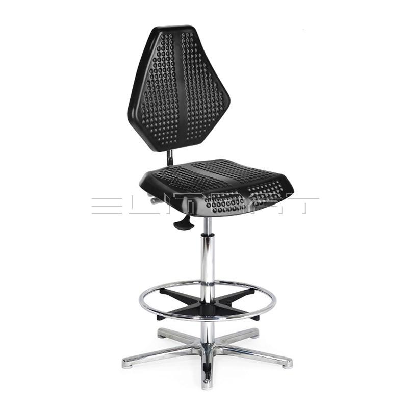 Wenn Sie extra hohe Stühle benötigen, beachten Sie bitte, dass ab einer einstellbaren Sitzhöhe von mehr als 65 cm die Stühle ordnungsgemäß mit einer Fußstütze ausgestattet sein müssen. Die Weiterentwicklung der Basis hat eine etwas höhere Rückenlehne und einen flacheren Sitzeingang. Die abgerundete Kante des Sitzes vorne macht Ihre Oberschenkel fester und Sie können leichter stehen und sitzen.