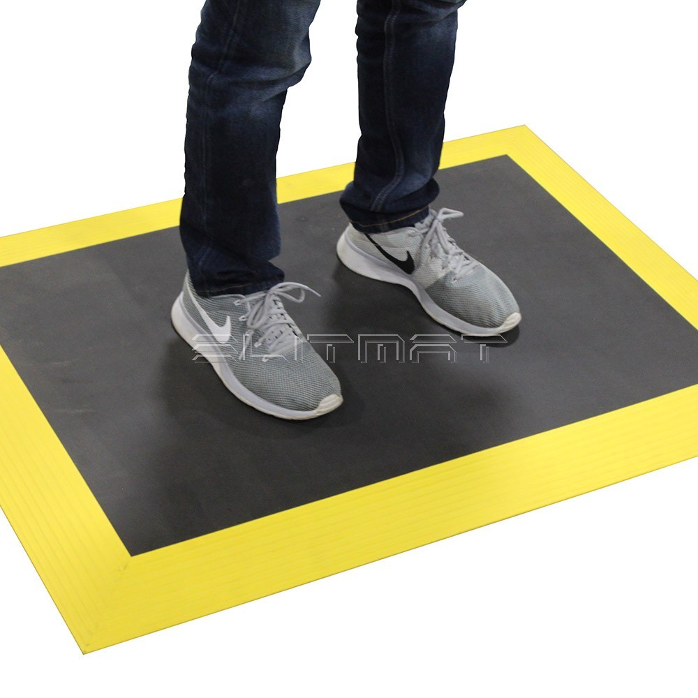 Der Ergomat XL Bubble Down besteht aus reinem Polyurethan und wurde entwickelt, um den Komfort zu erhöhen und gleichzeitig Stolperfallen, Körperschmerzen, Qualitätsprobleme und Krankheitsbilder zu reduzieren. Dies ist die ultimative Matte für trockene Umgebungen oder wenn statische Kontrolle ein Muss ist. Gelbe Schrägen für zusätzliche visuelle Wirkung.